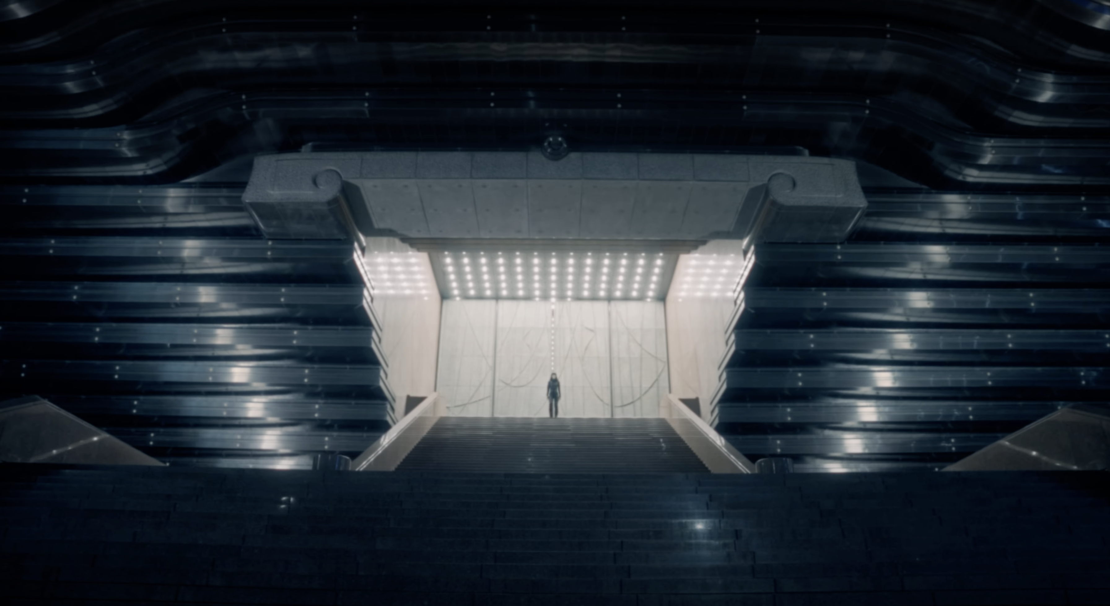 The final scene is a rupture. The protagonist steps beyond the temple walls, back into the city’s electric hum. The ritual has ended. The portal has closed. But something lingers—an imprint, an awareness, a fracture in perception. She removes her glasses, as if shedding an illusion, her eyes now reflecting something altered, something seen. The temple lights fade into darkness behind her.