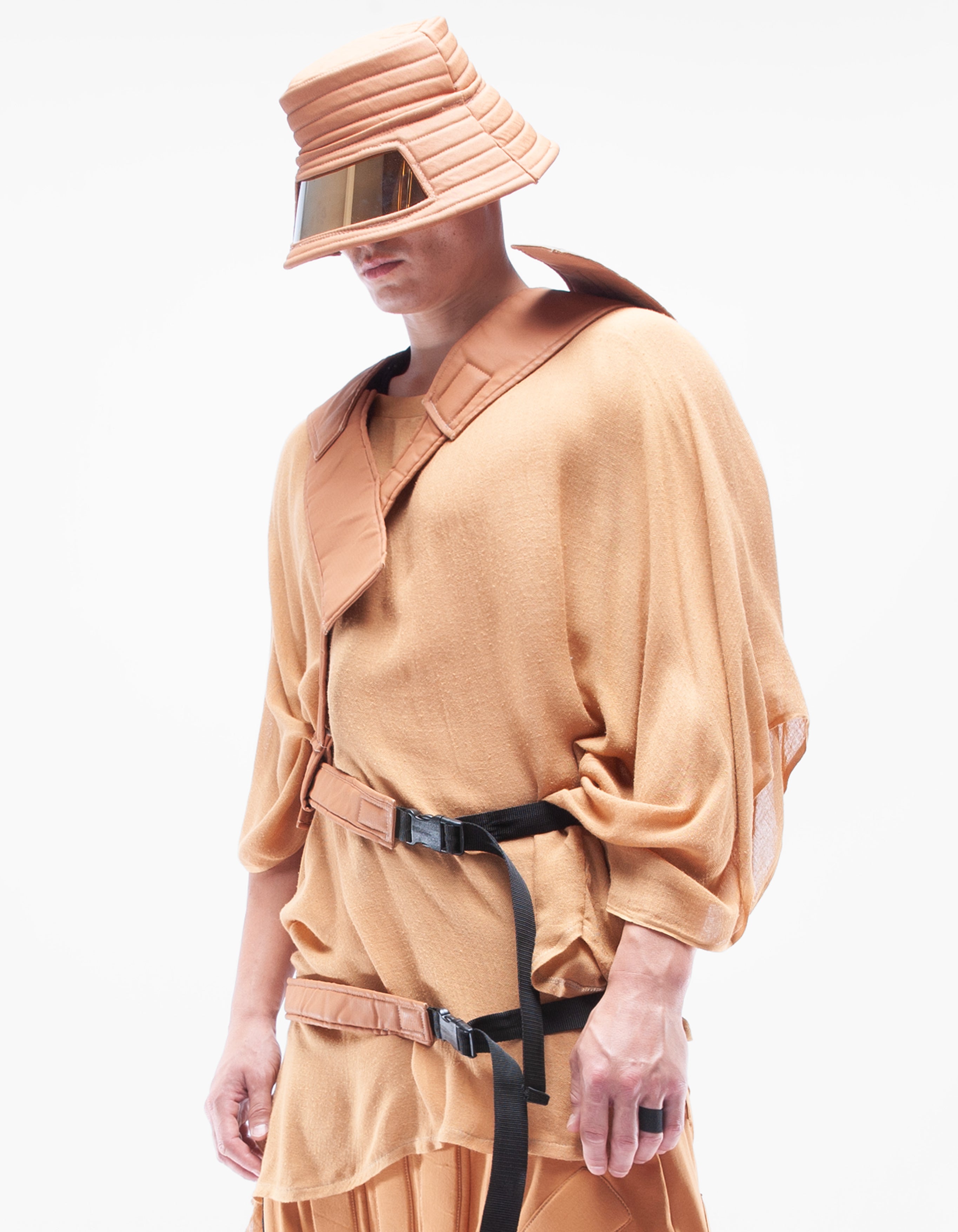 detailed asymmetric wax denim neoprene accessory